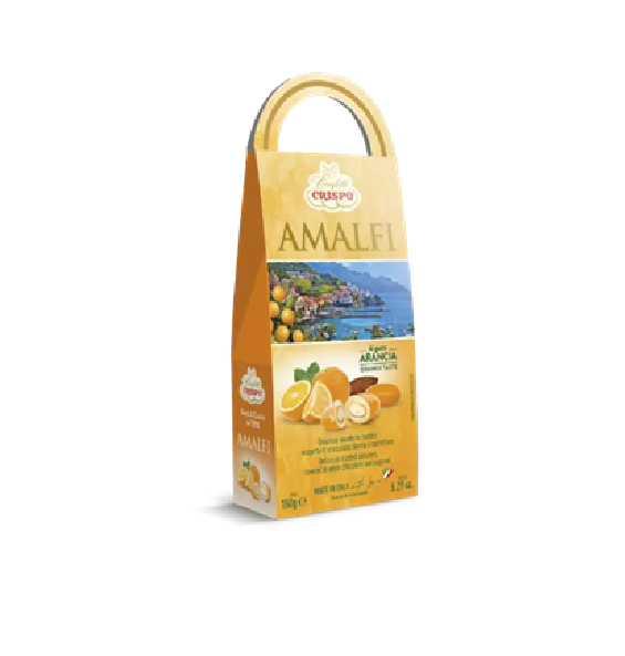 Gusta i Confetti Crispo Amalfi al gusto Arancia, un dolce omaggio ai profumi e ai colori della Costiera Amalfitana. Con il loro cuore morbido e l’aroma naturale d’arancia, offrono un’esperienza di gusto fresca e raffinata. Perfetti per cerimonie, bomboniere, confettate o per un momento di dolcezza speciale, nel pratico formato da 150 g.